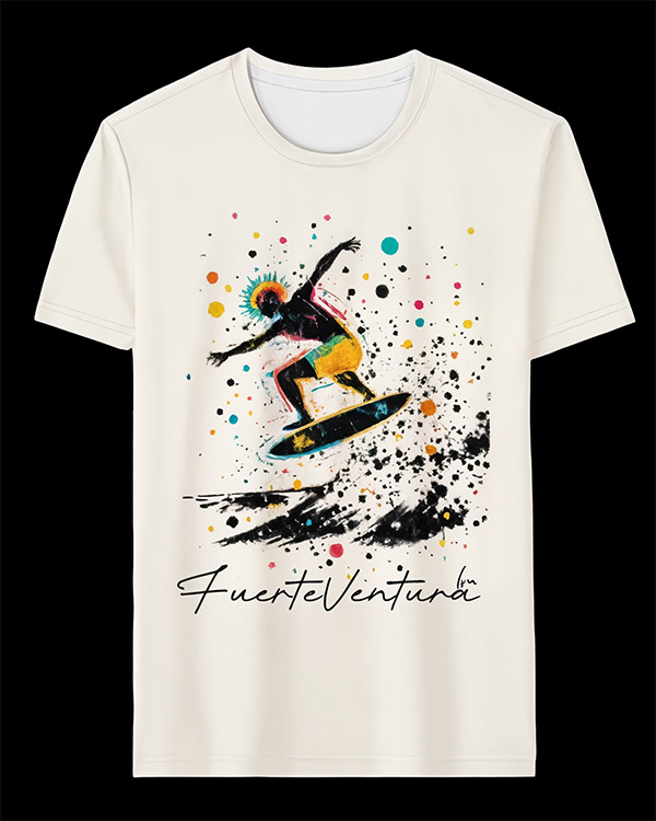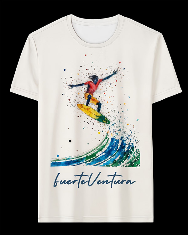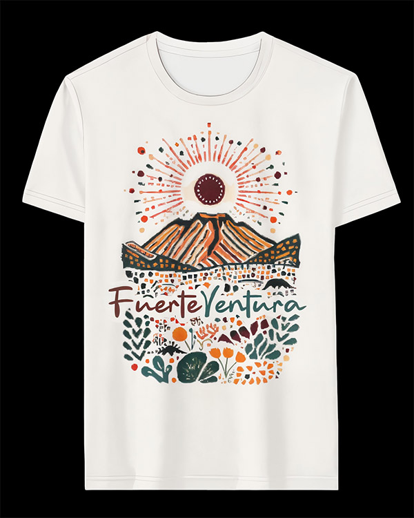 We design t-shirts, beach towels and swim shorts that capture the essence of Fuerteventura, blending its natural landscapes, lively culture, and island soul into unique, artistic creations made to stand out.